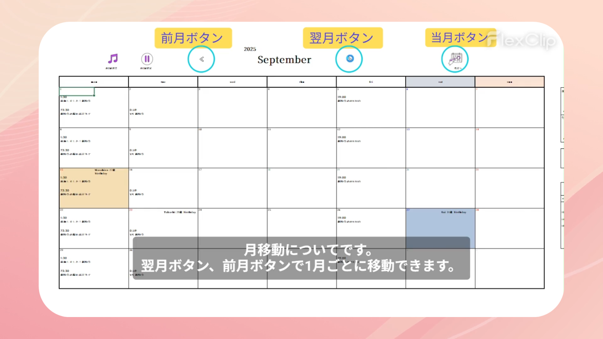 1.月間カレンダーについて