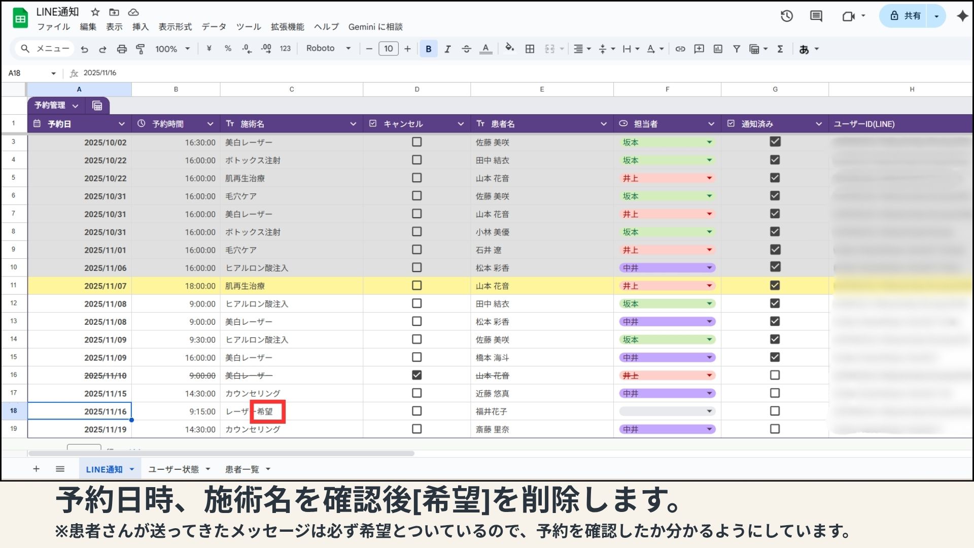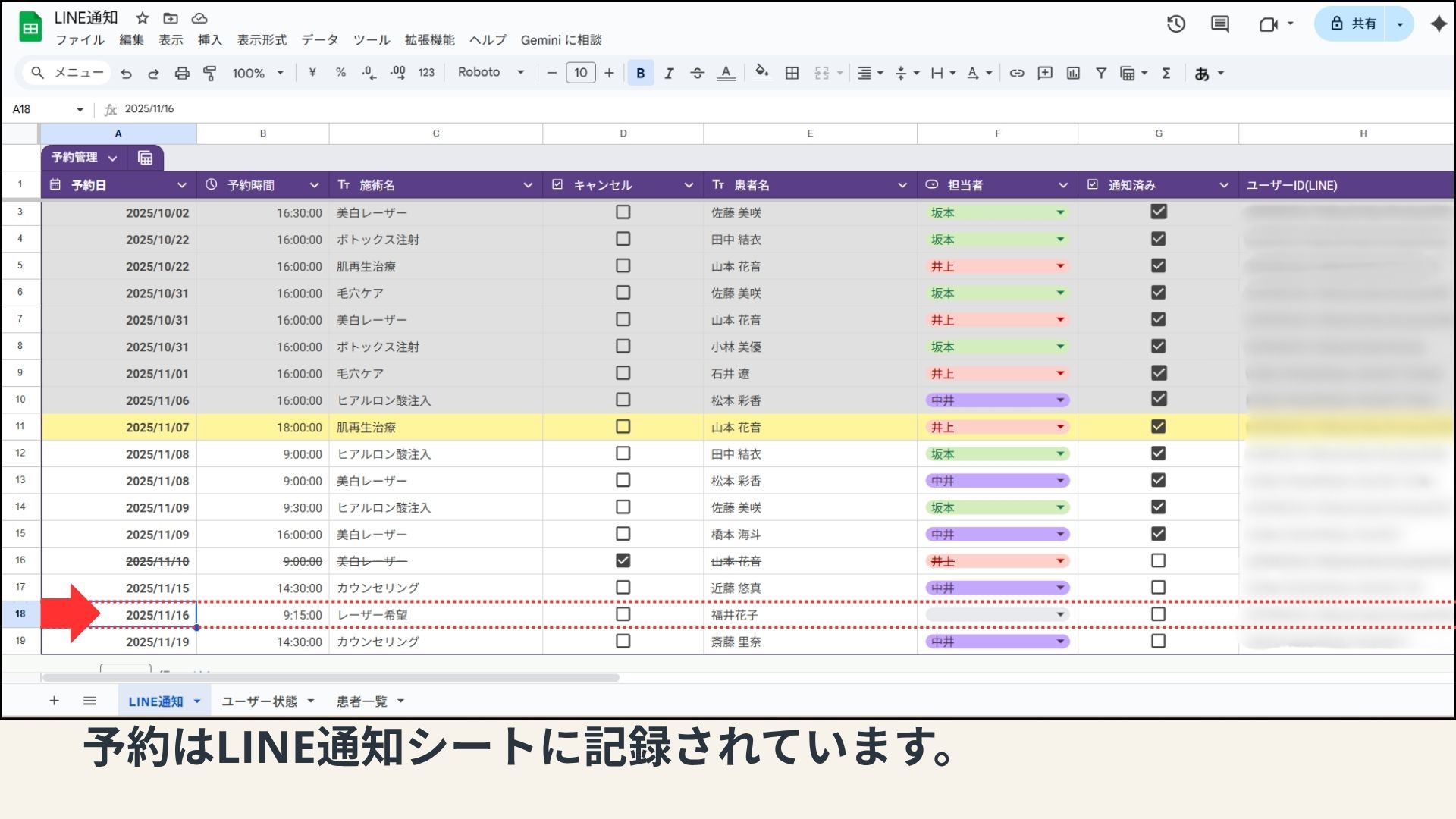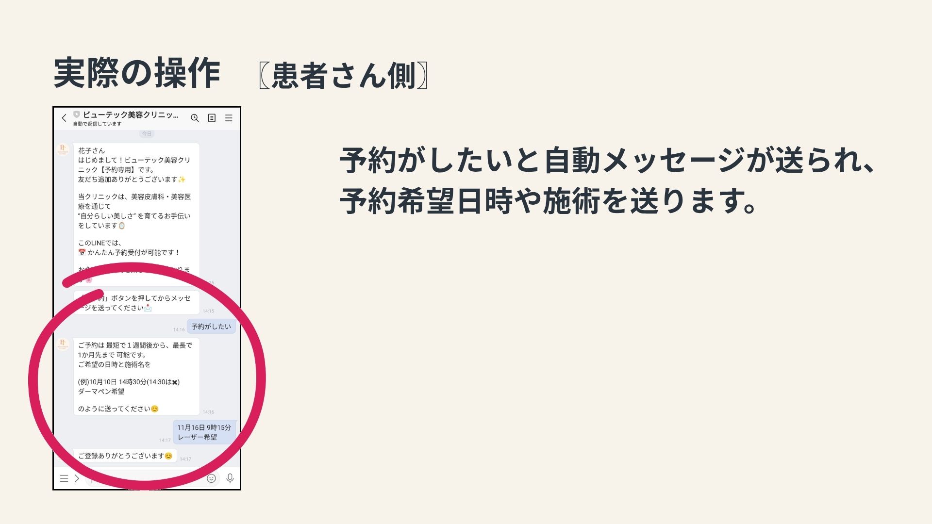 LINEで予約を取ること