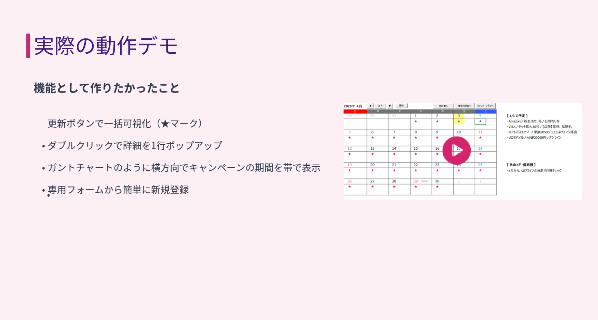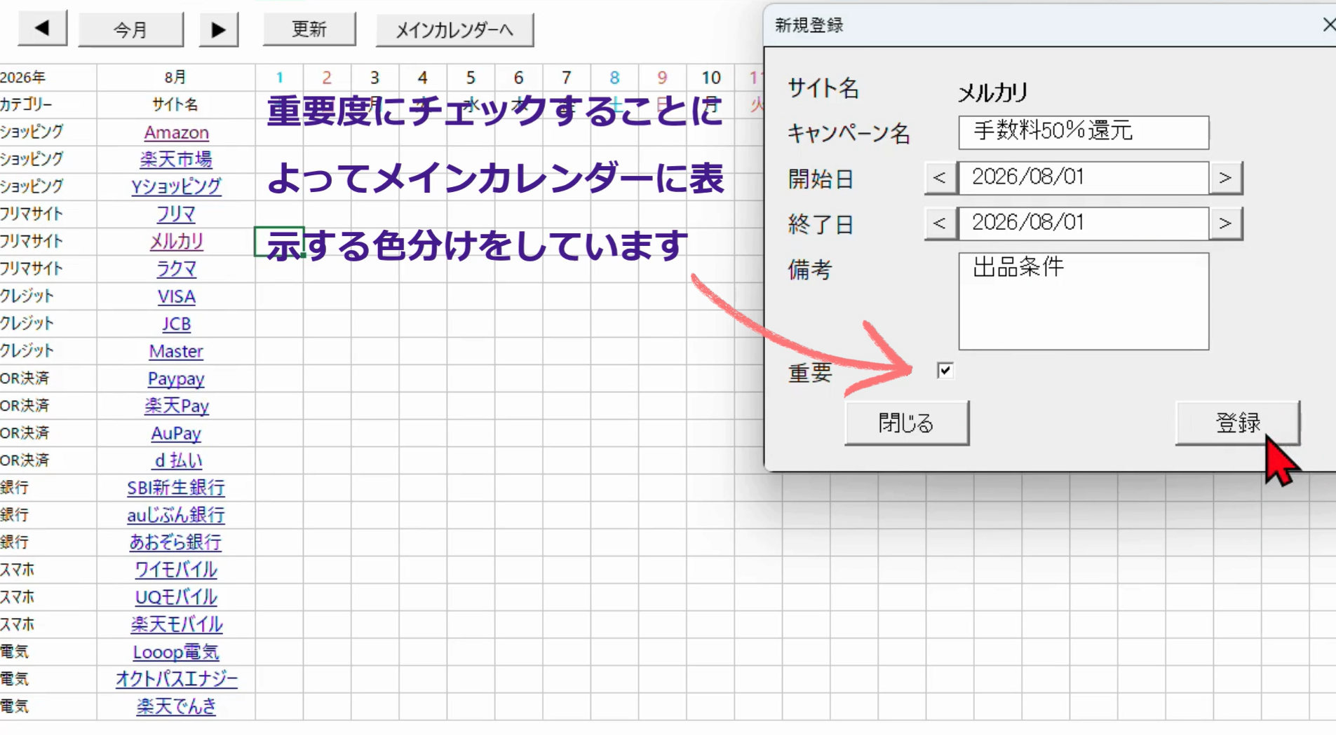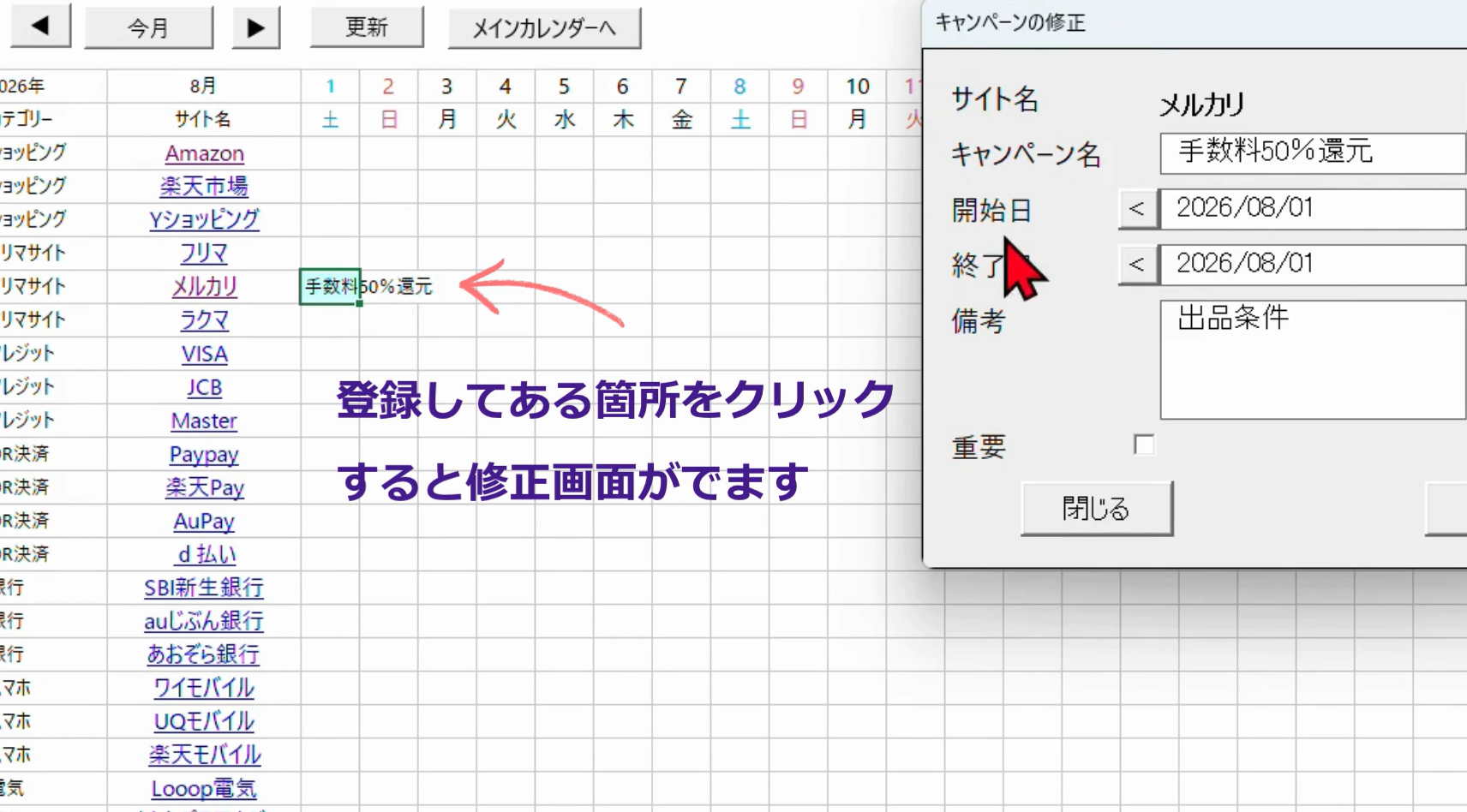 様々なポイントキャンペーンがあり手帳やスマホで管理することに感じていました。VBAを使い、一括で管理することを目指したいと思いました。