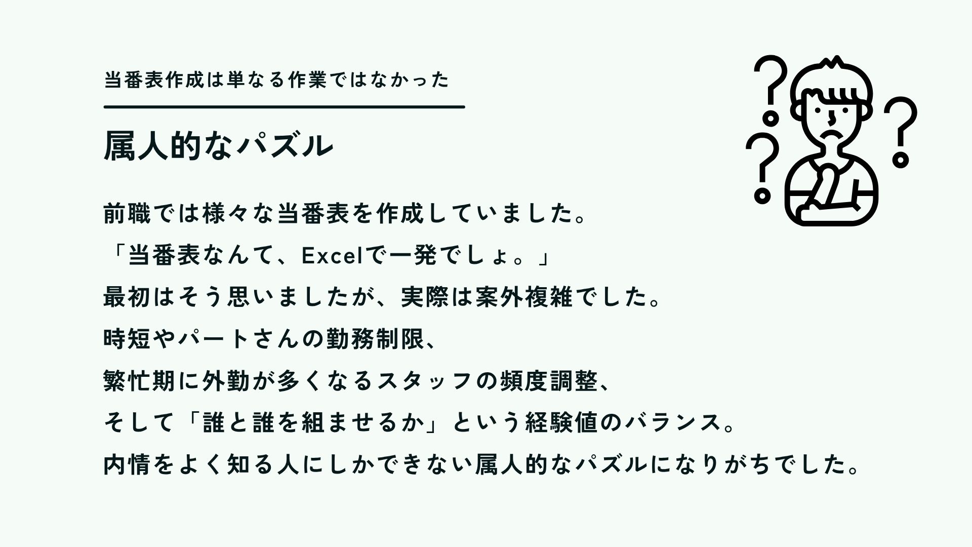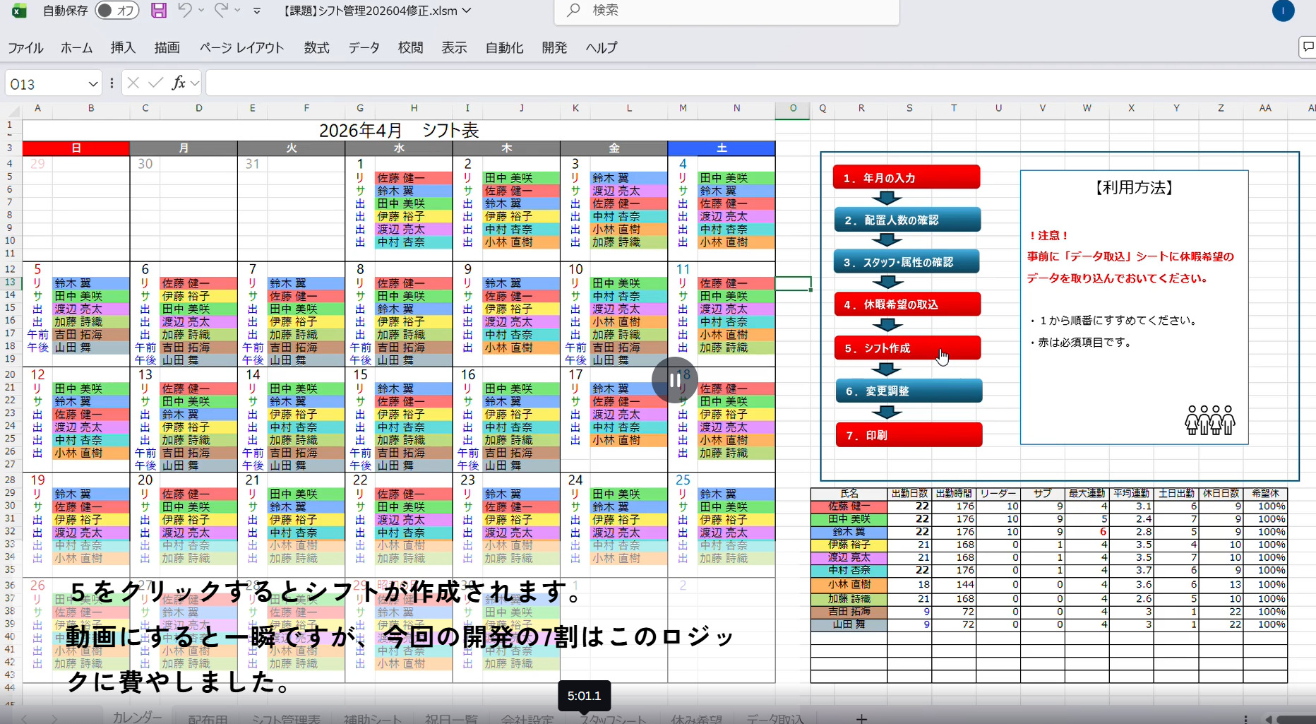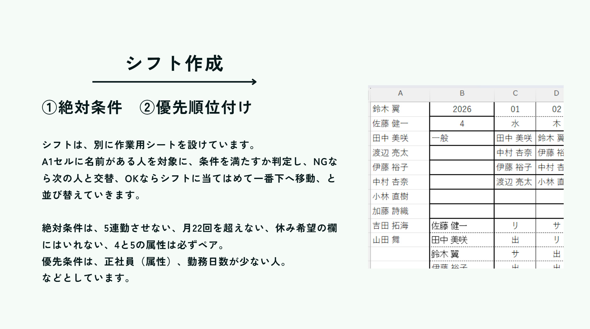 複雑なシフト作成を効率化できるシステムを作成しました。