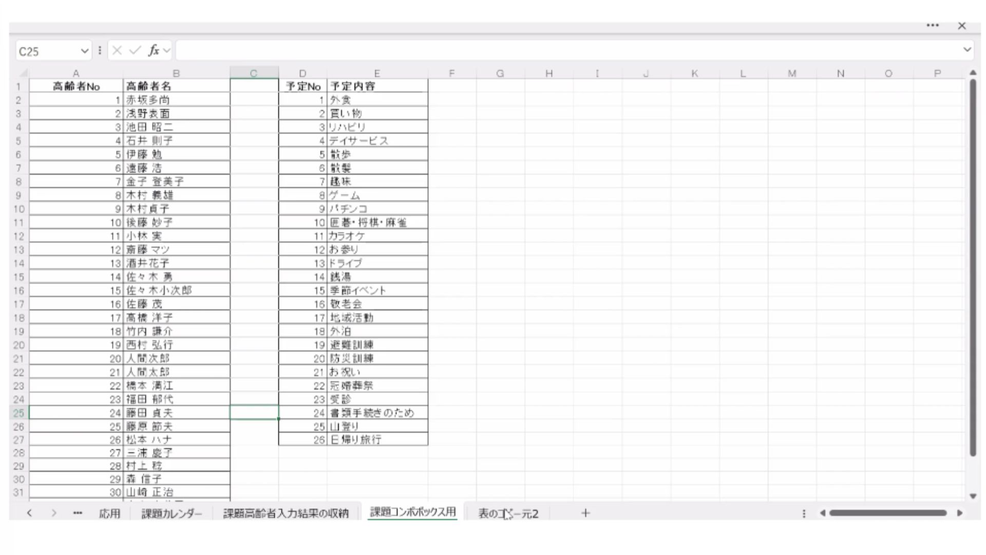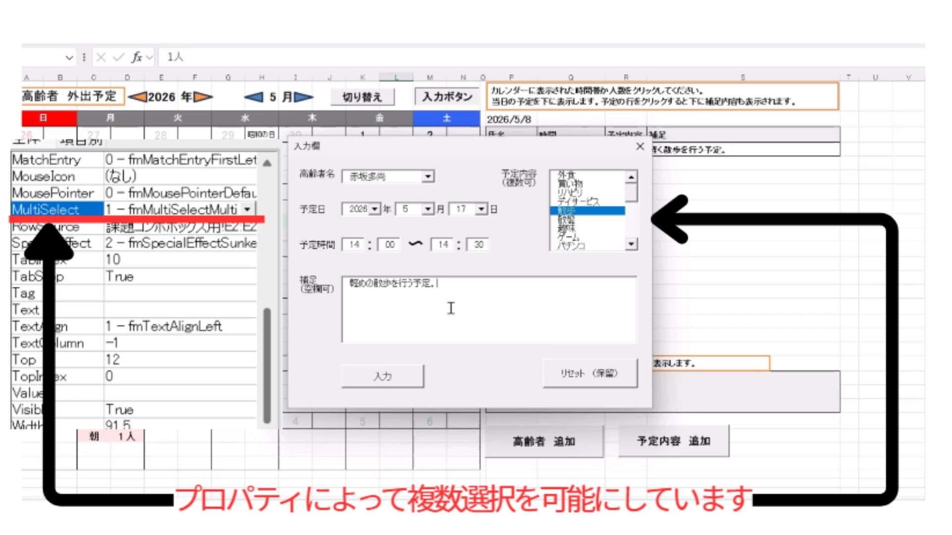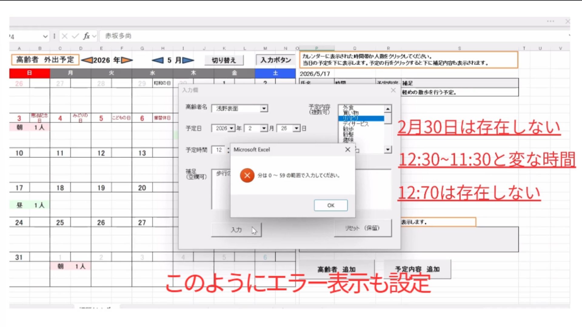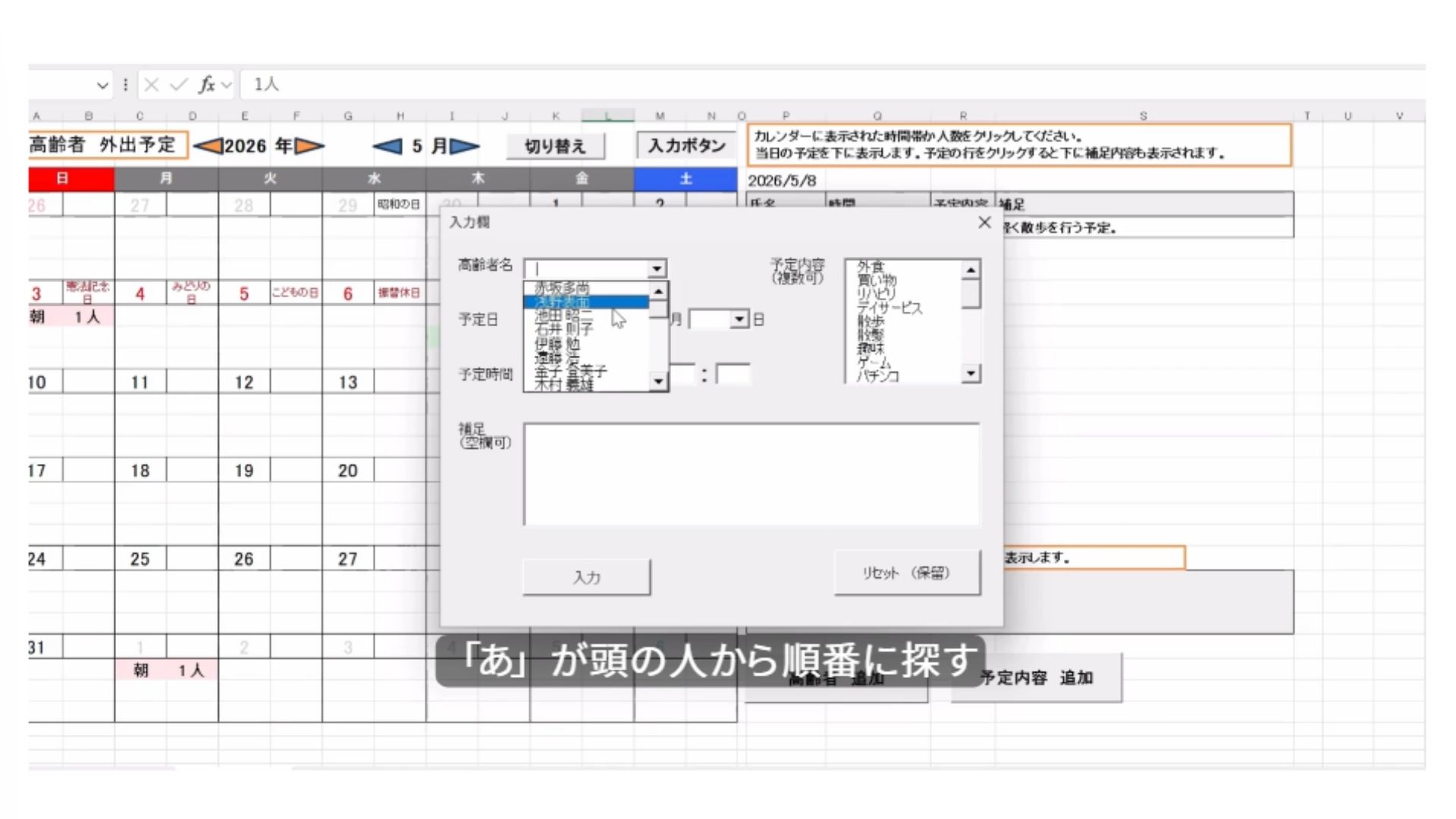 VBA 高齢者予定入力カレンダー