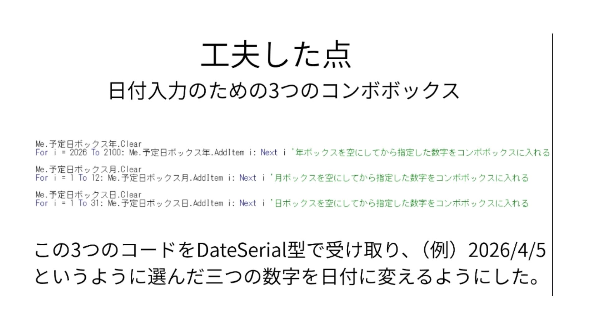 また、コンボボックスの内容も追加できるようにしています。