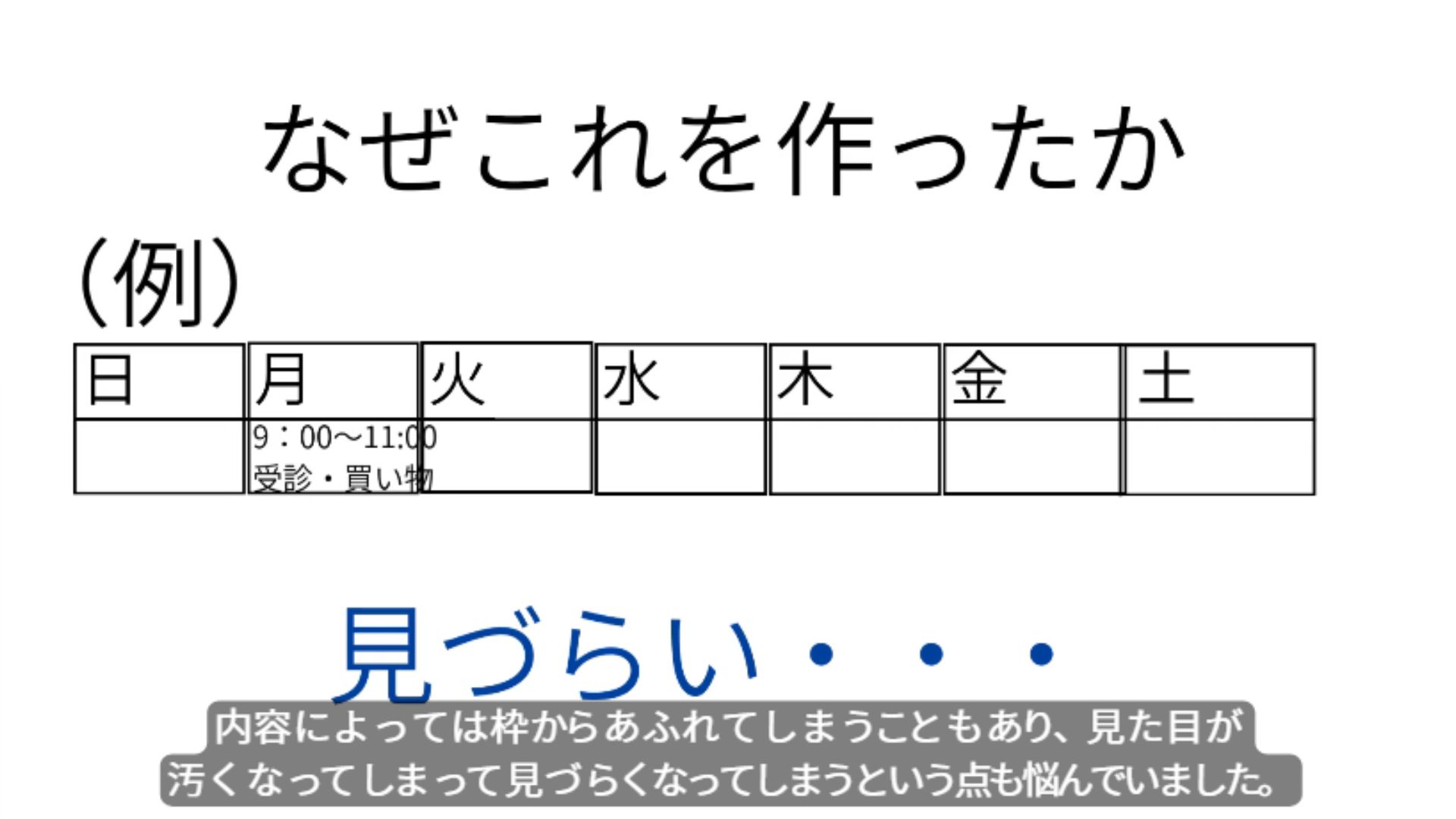 ・前職で使っていたカレンダーの使い勝手をもっとよくしたい・見た目もきれいにしたいと考えたのが制作のきっかけ