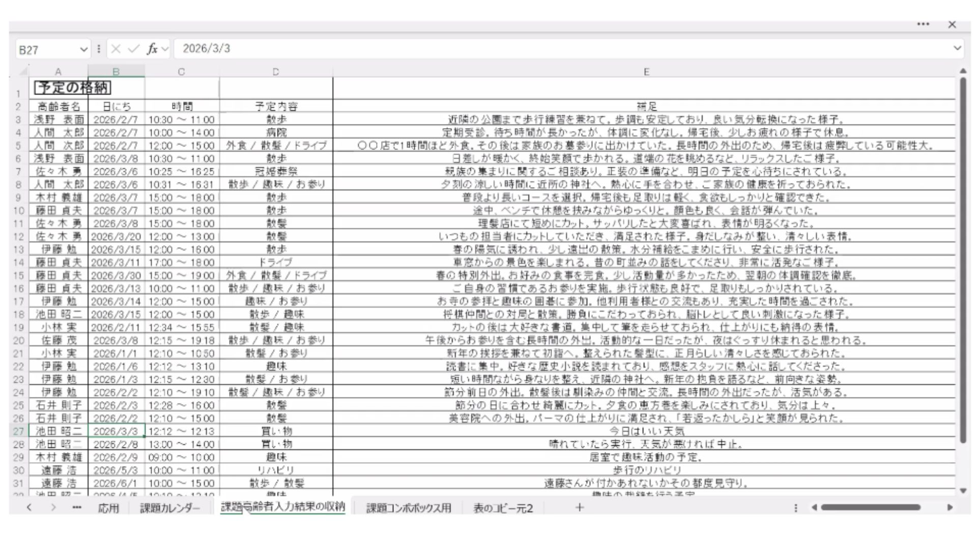 高齢者予定カレンダー