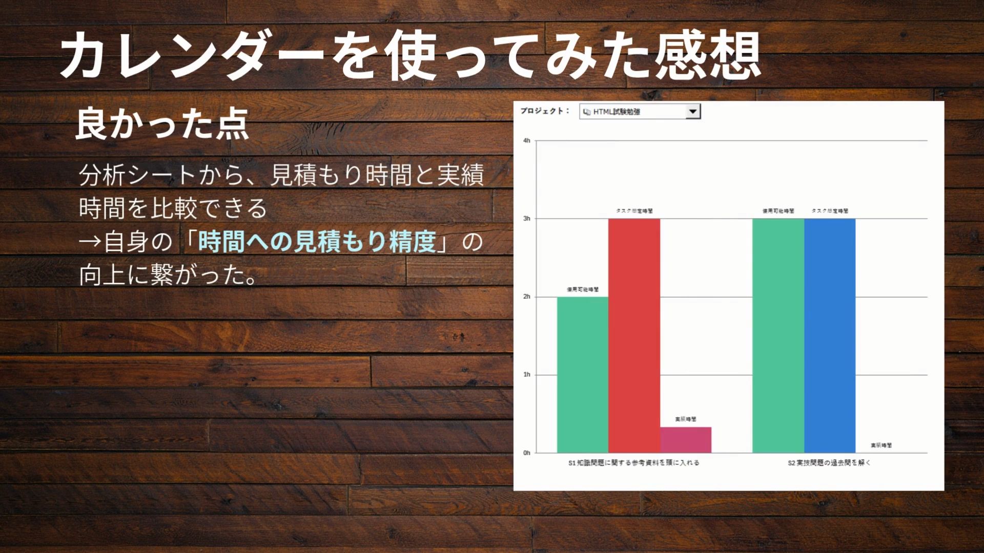 ・進捗確認シートから、事前に割り当てた時間と実績時間を比較すること