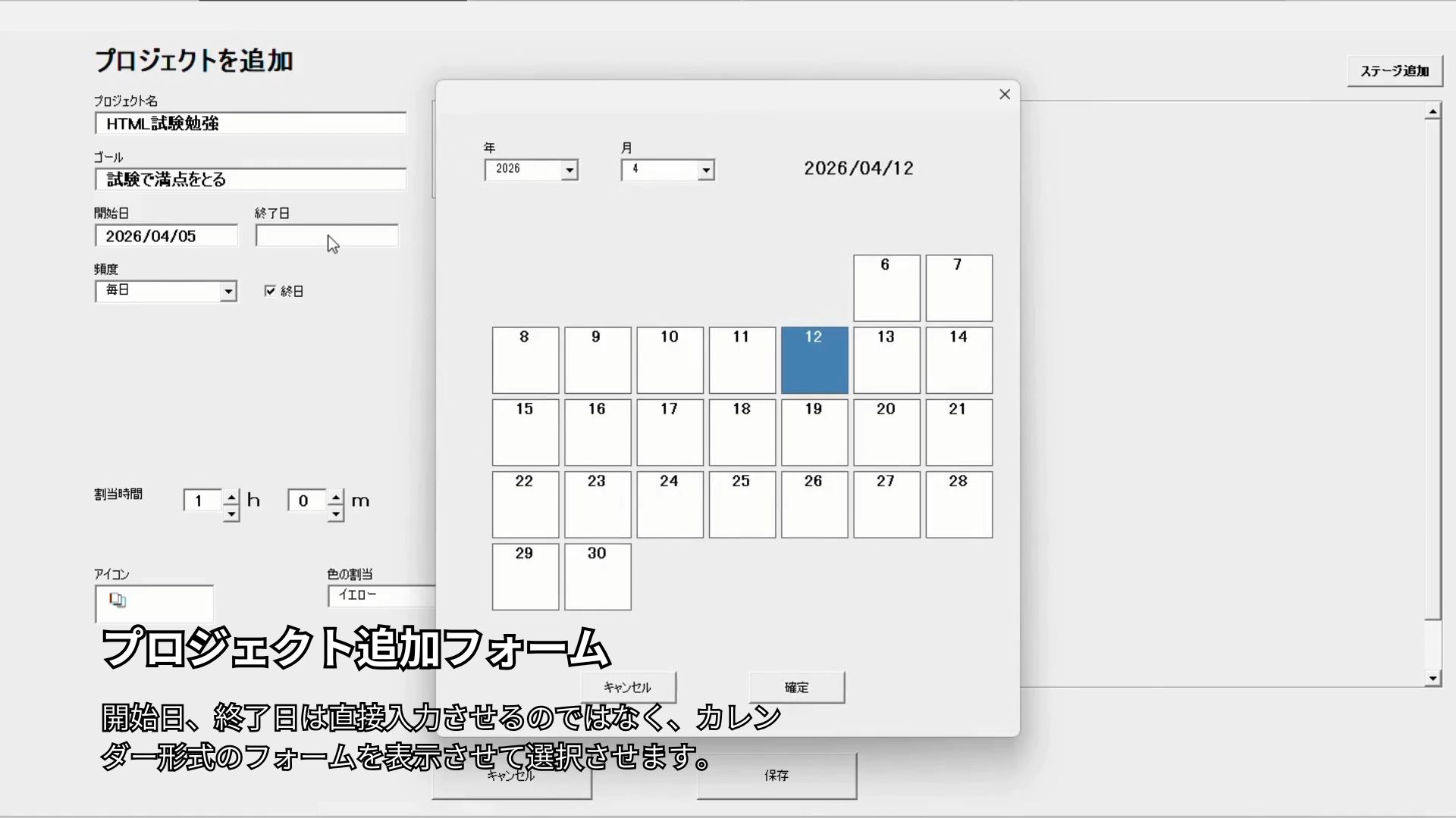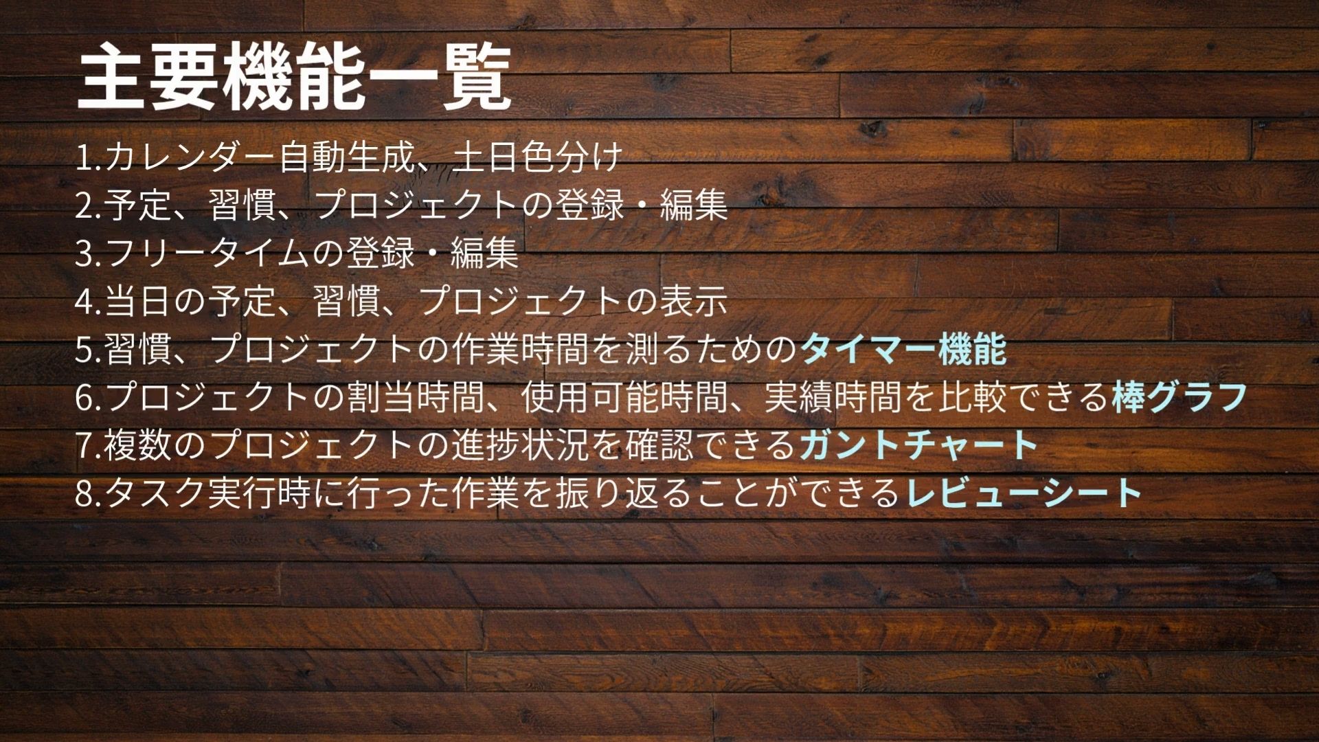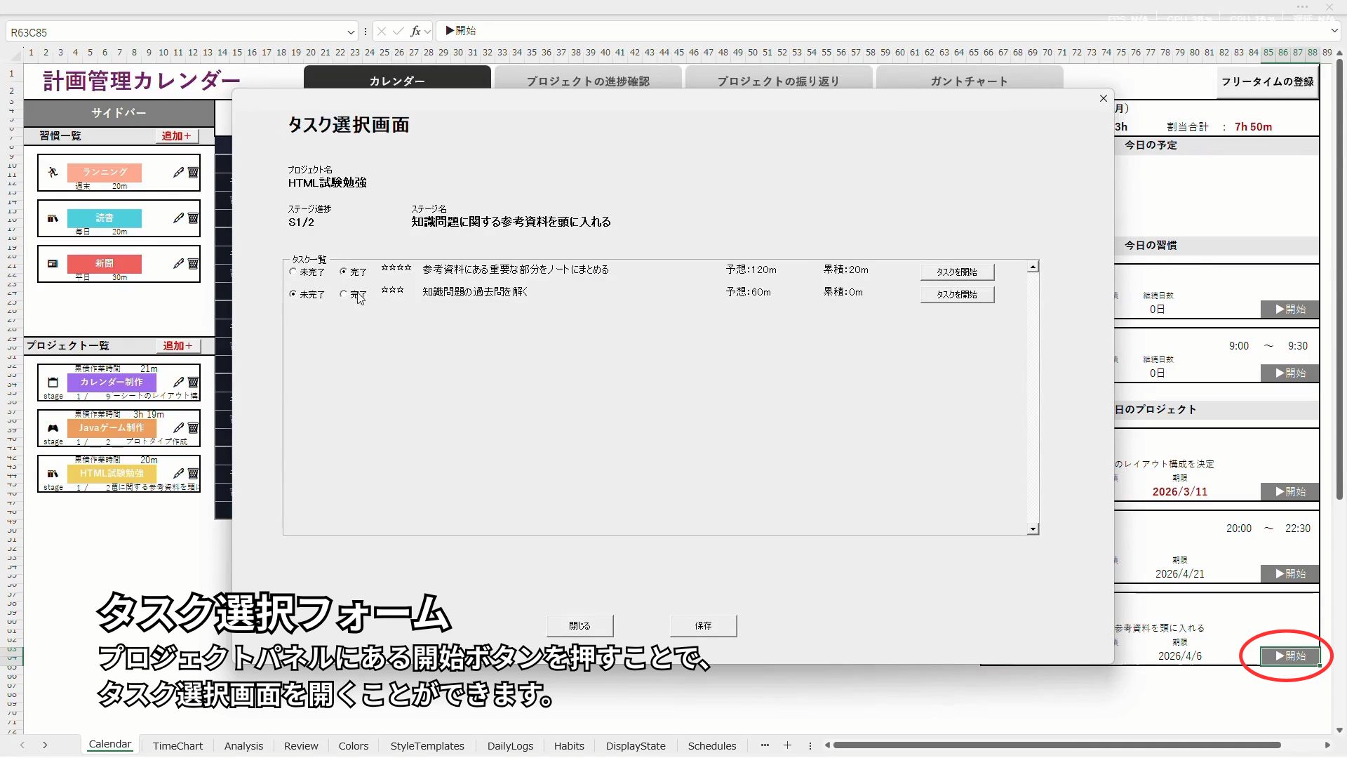 ・フリータイム、予定、習慣、プロジェクトの登録